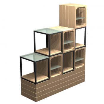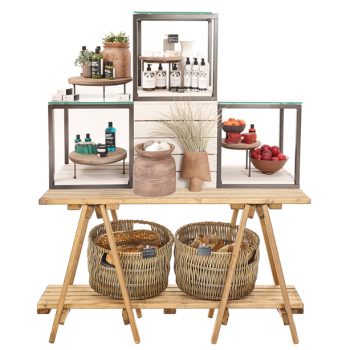 Create stunning retail displays with Linkshelving’s rustic range of merchandising cubes, metal framed cubes with timber decks, chunky wooden crates and a wide range of merchandising shop props. The versatility of the retail cube system allows store owners to construct dynamic central displays for ever changing store interiors, including display gondolas. Click on any of the combinations below for product breakdown and pricing: